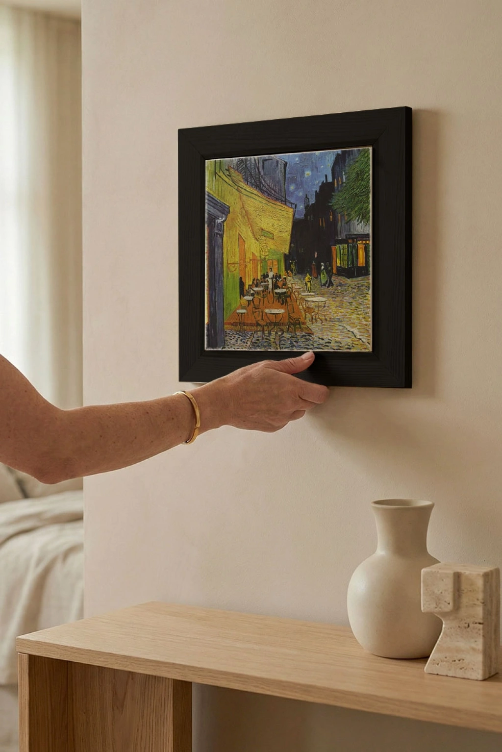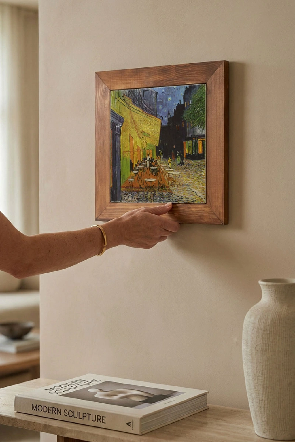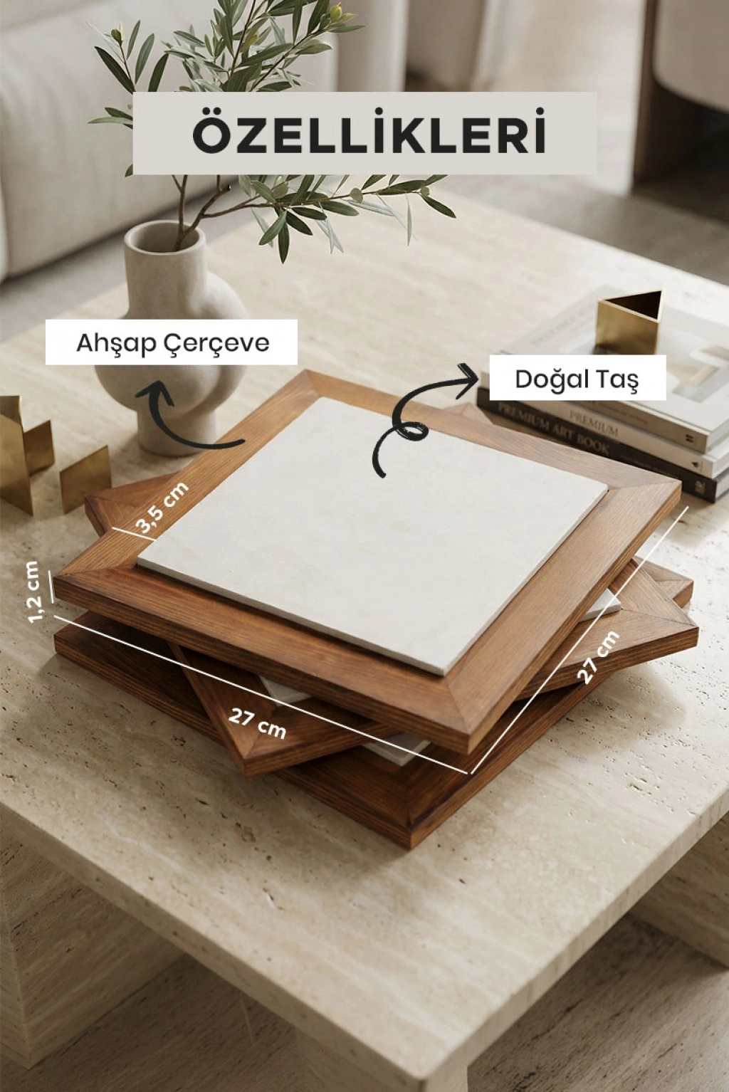 Doğal travertenin kendine özgü damar yapısı sayesinde her tablo ayrı bir karakter taşır. Salon, yatak odası, ofis ve çalışma alanlarında modern ve doğal bir dekoratif tamamlayıcı olarak kullanılabilir.